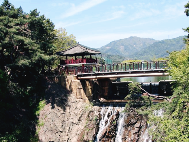 용추폭포 & 유리전망대 : 의림지 안쪽으로 조금 들어가면 시원한 물줄기를 뿜어내는 용추폭포를 만나 볼 수 있는데요 폭포 위에는 아찔한 유리전망대가 있어 짜릿한 경험과 함께 멋진 풍경을 감상할 수 있습니다.
