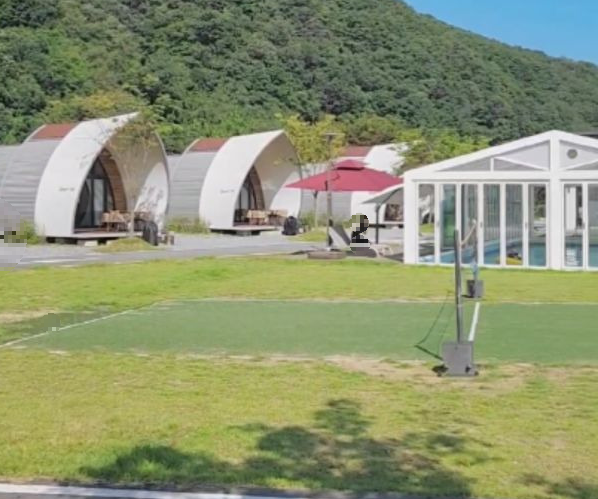 반려동물 동반 : 반려동물 동반이 가능한 글램핑장으로 울타리가 쳐진 전용 공간에서 반려견이 안전하고 자유롭게 뛰어놀 수 있도록 설계되어 있어 반려동물이 없는 다른 이용객들도 불편함 없이 행복한 시간을 보낼 수 있습니다.